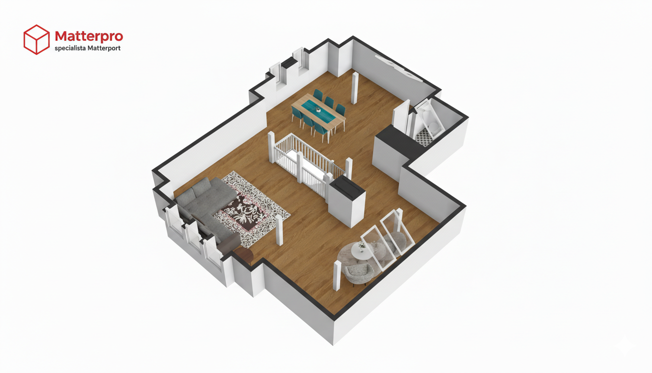 K virtuální prohlídce Matterport® lze přiobjednat efektní 3D půdorysné schéma. Do půdorysu lze umístit také Vaše logo, případně další údaje.