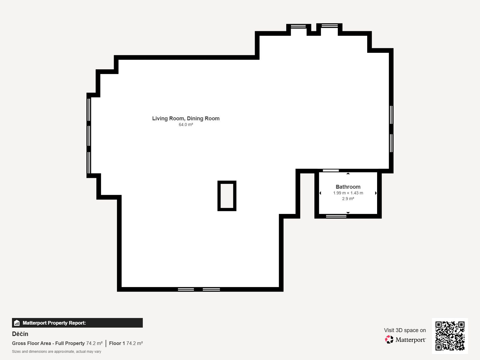 V ceně Matterport® 3D virtuální prohlídky vždy obdržíte základní schématický půdorys s výměrami místností. V půdorysu jsou také vyznačena okna a dveře jednotlivých místností.